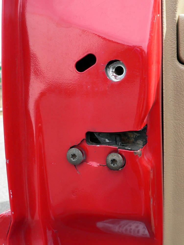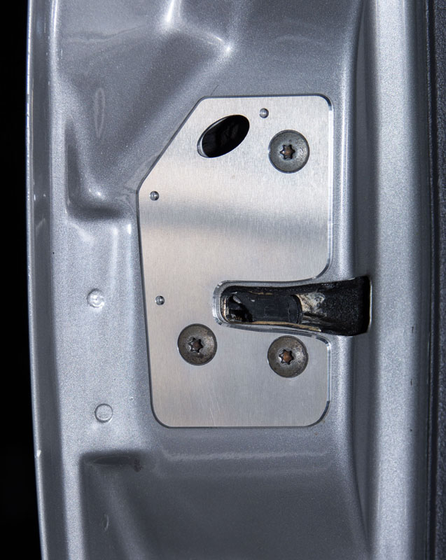 This is the door plate with replacement bolts for the 97-01 Jeep Cherokee (XJ). This plate, machined out of 1/8" 6061 T6 aircraft grade aluminum, will allow you to repair the door and reinforce the door latch area without body work. This plate comes with 3 longer and stronger bolts to replace the 3 stock bolts which this version of the plate accommodates. In addition there are an additional 3 holes for screws or rivets for further reinforcement.